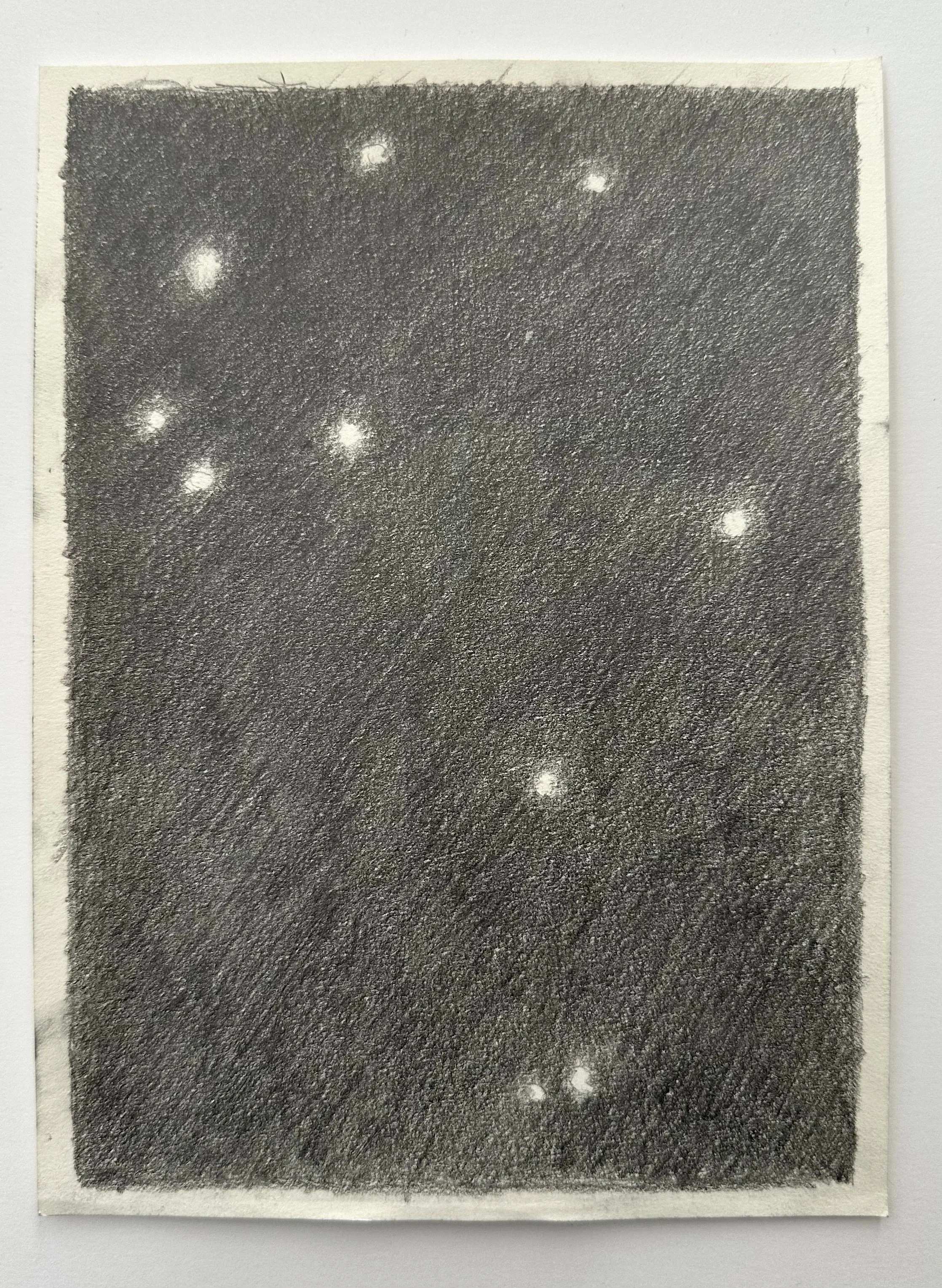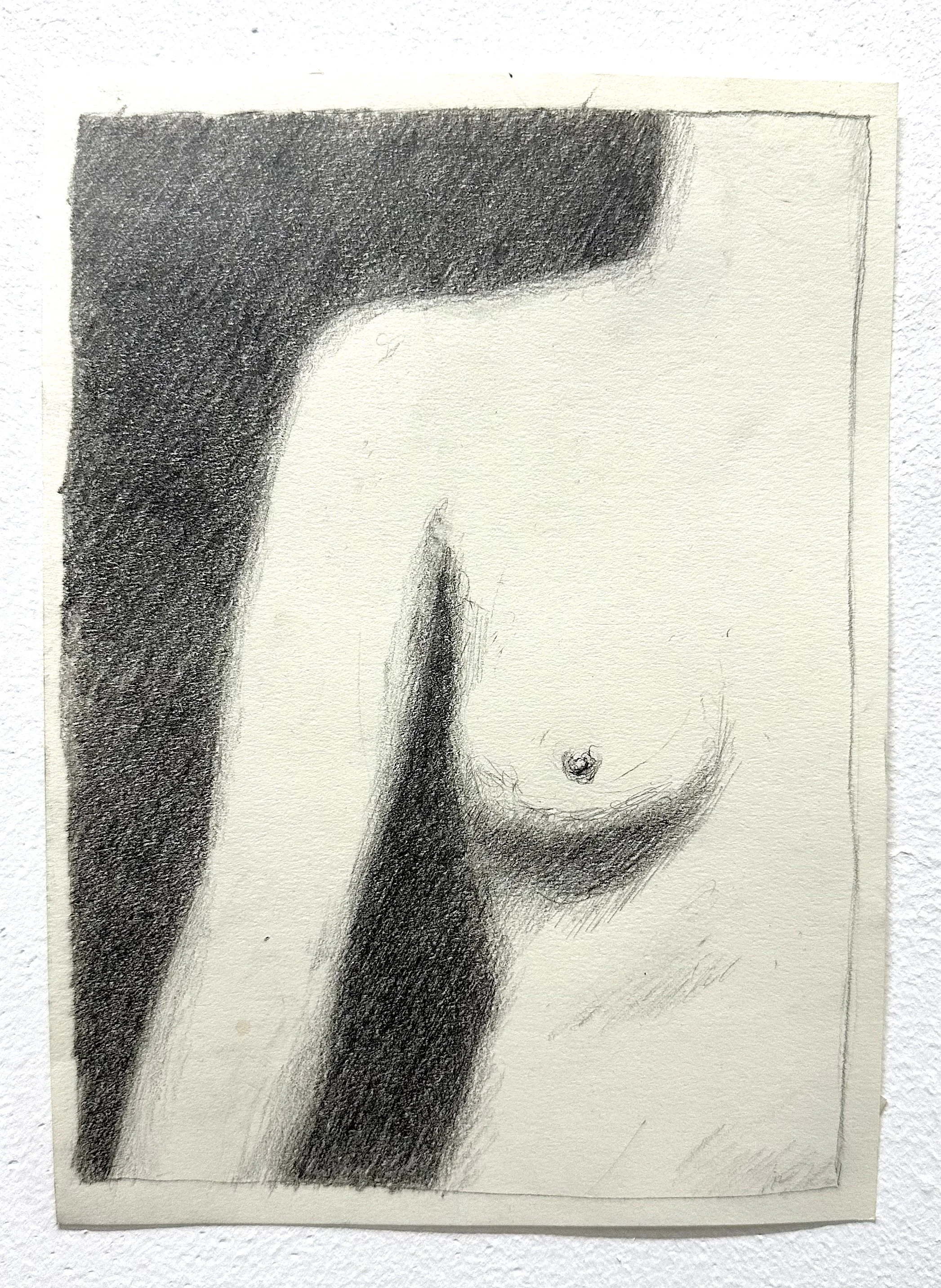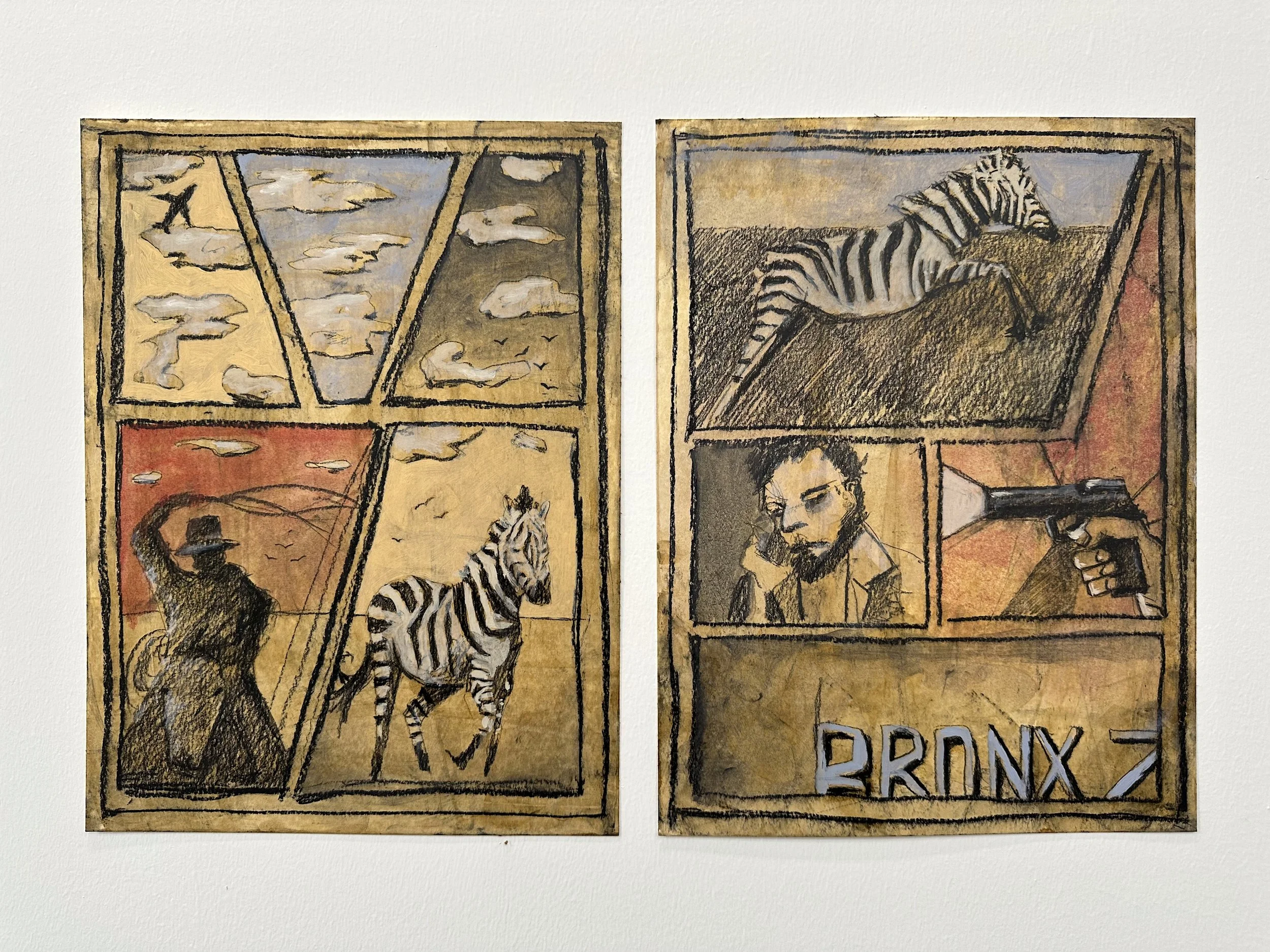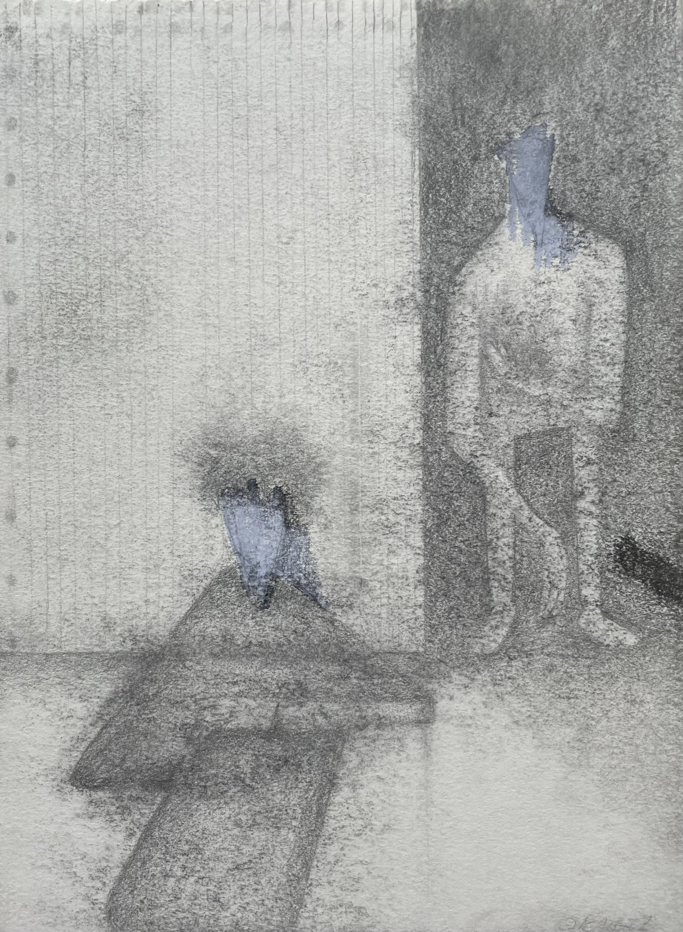 Works on paper: Shellac, graphite, charcoal, colored pencil, oil paint