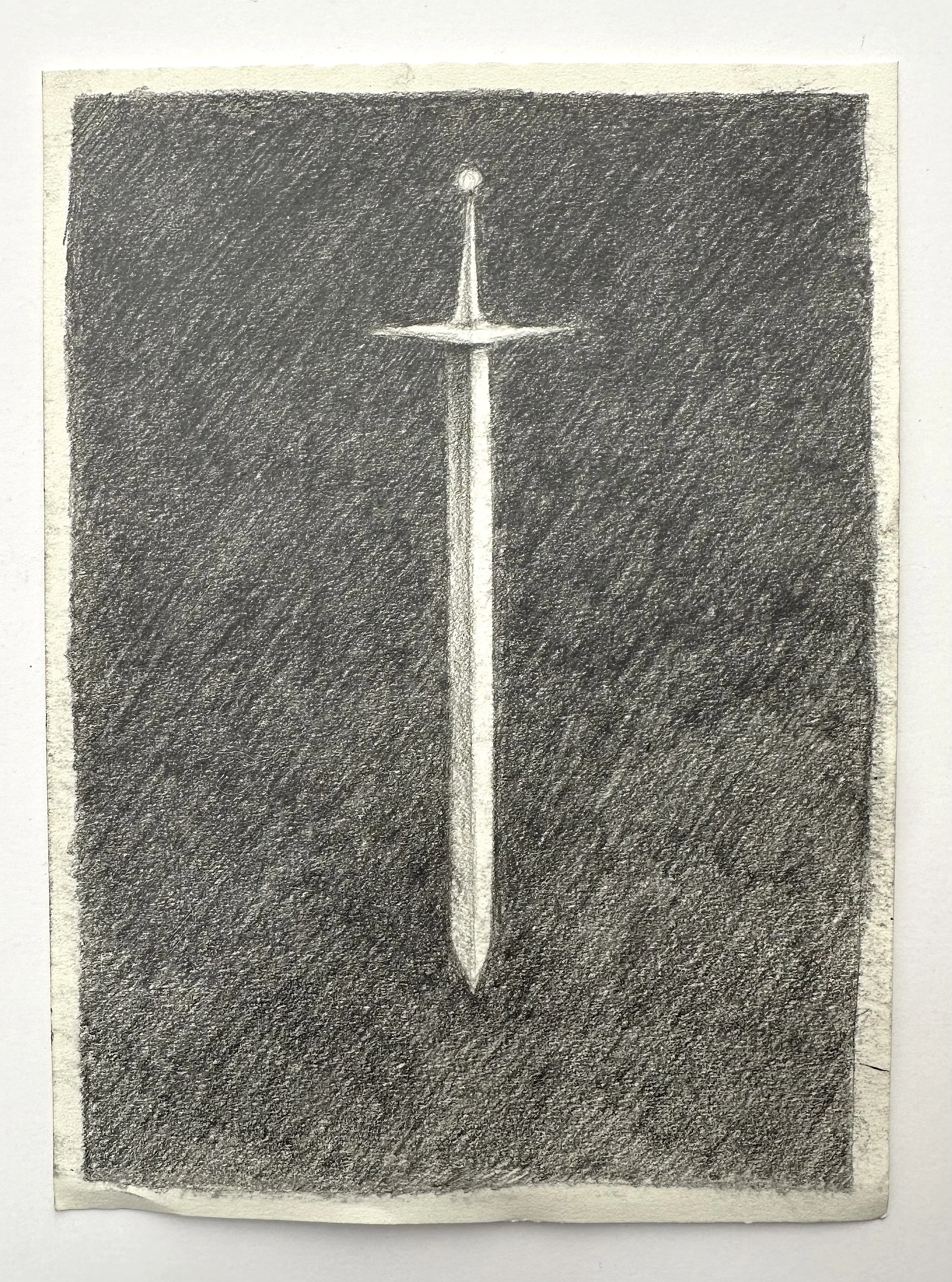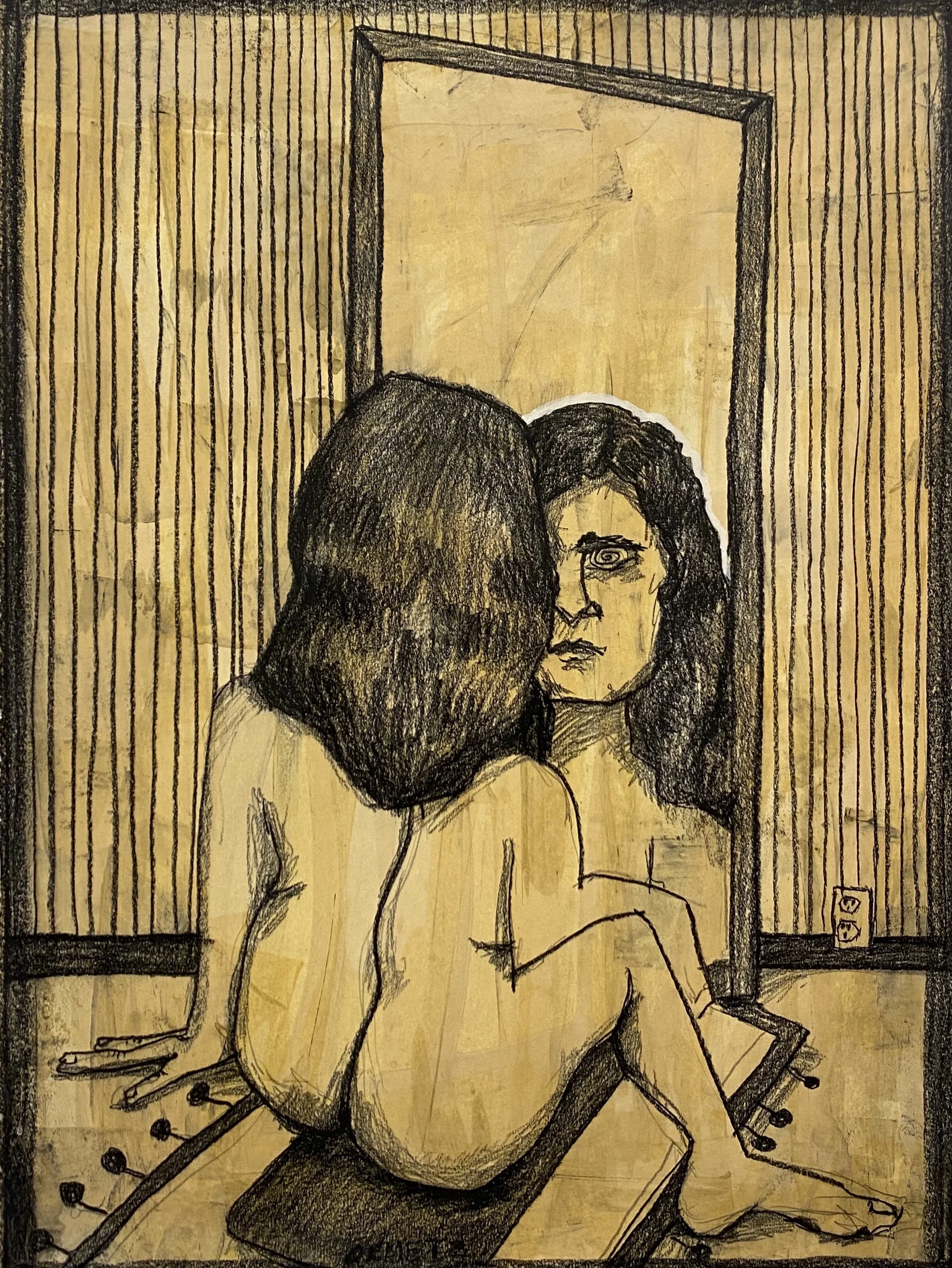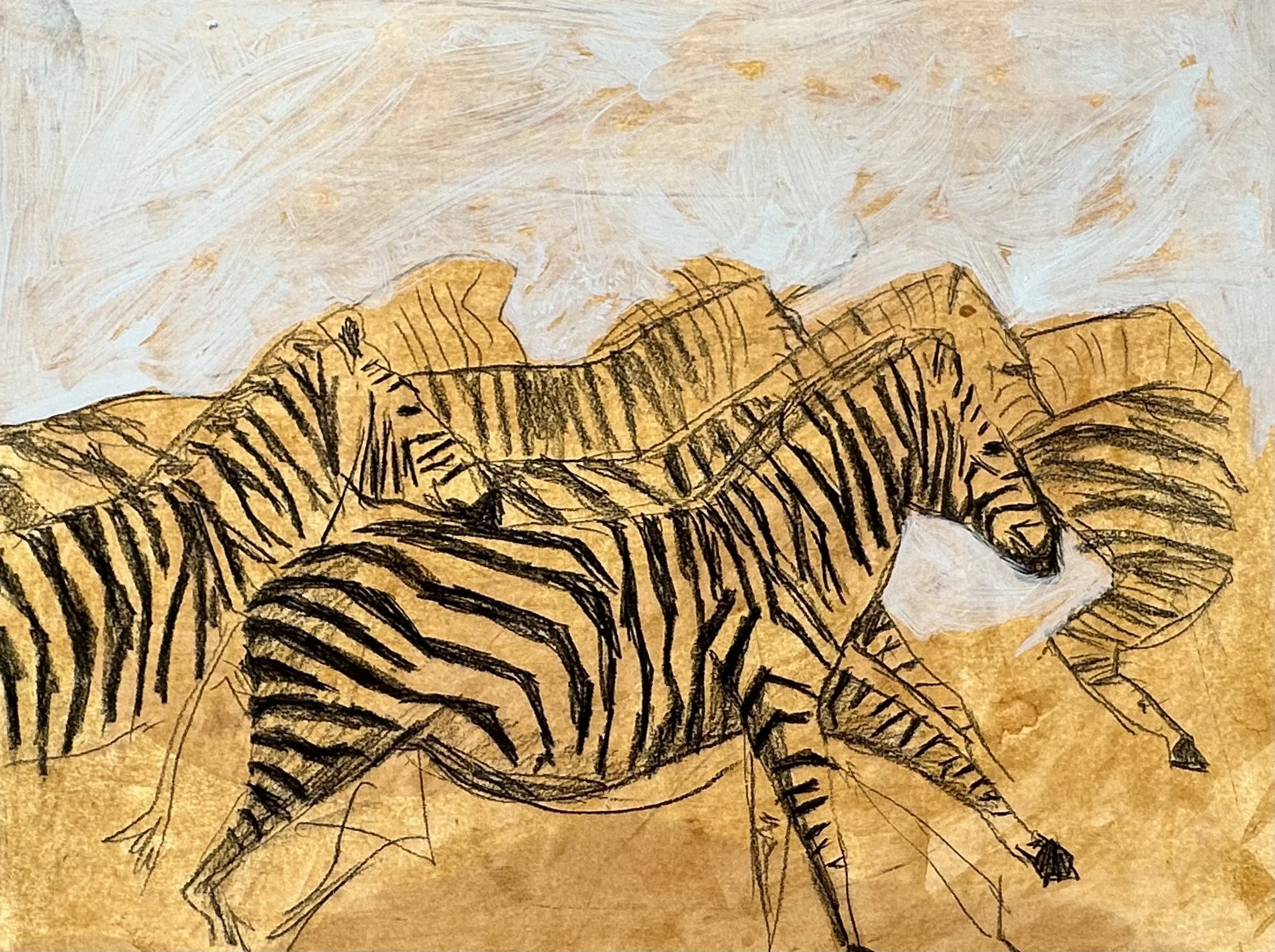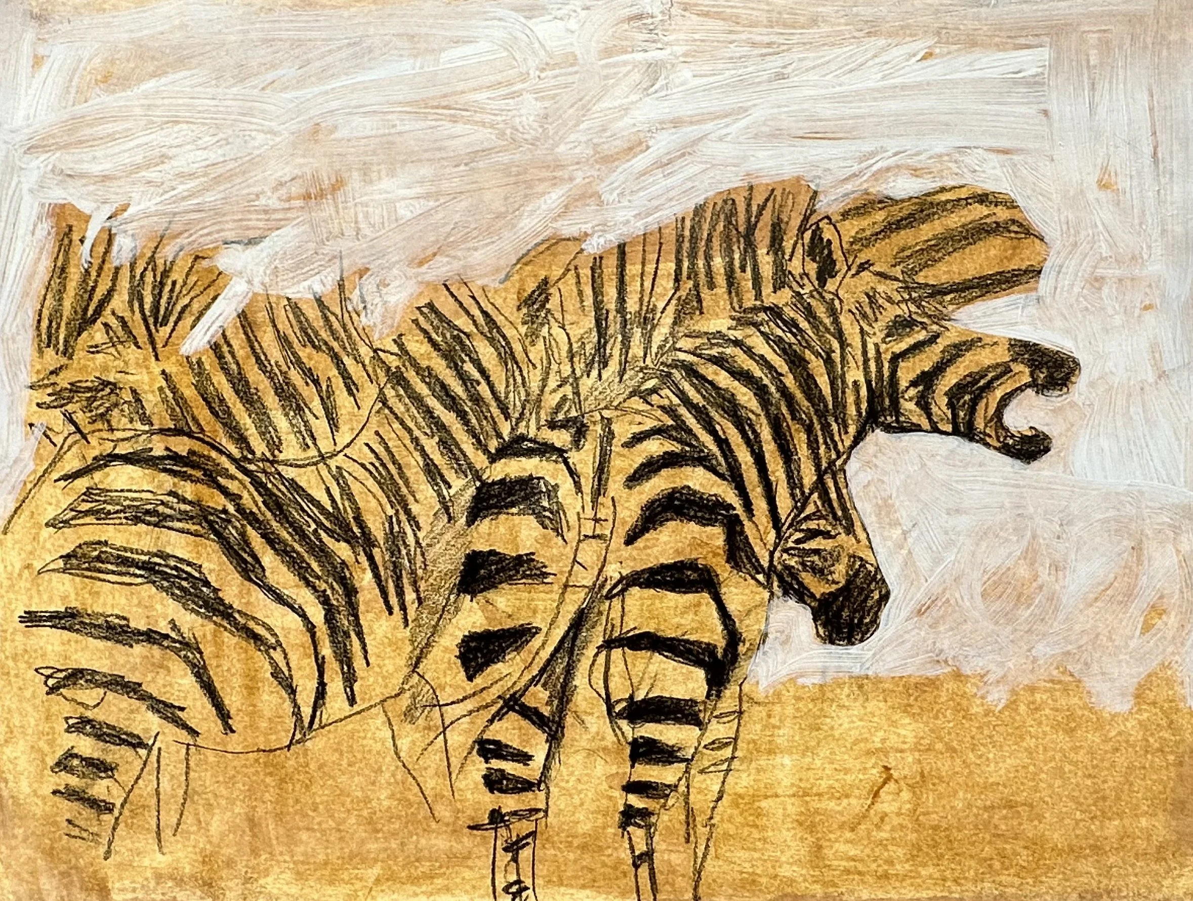 Works on paper: Shellac, graphite, charcoal, colored pencil, oil paint