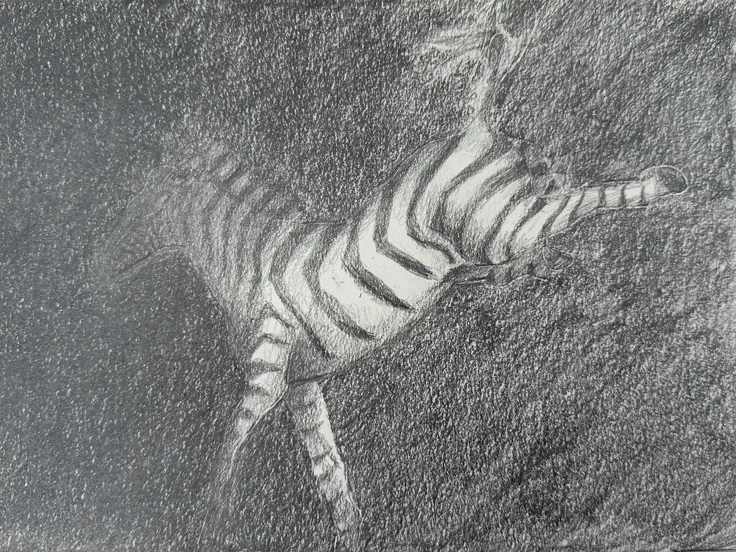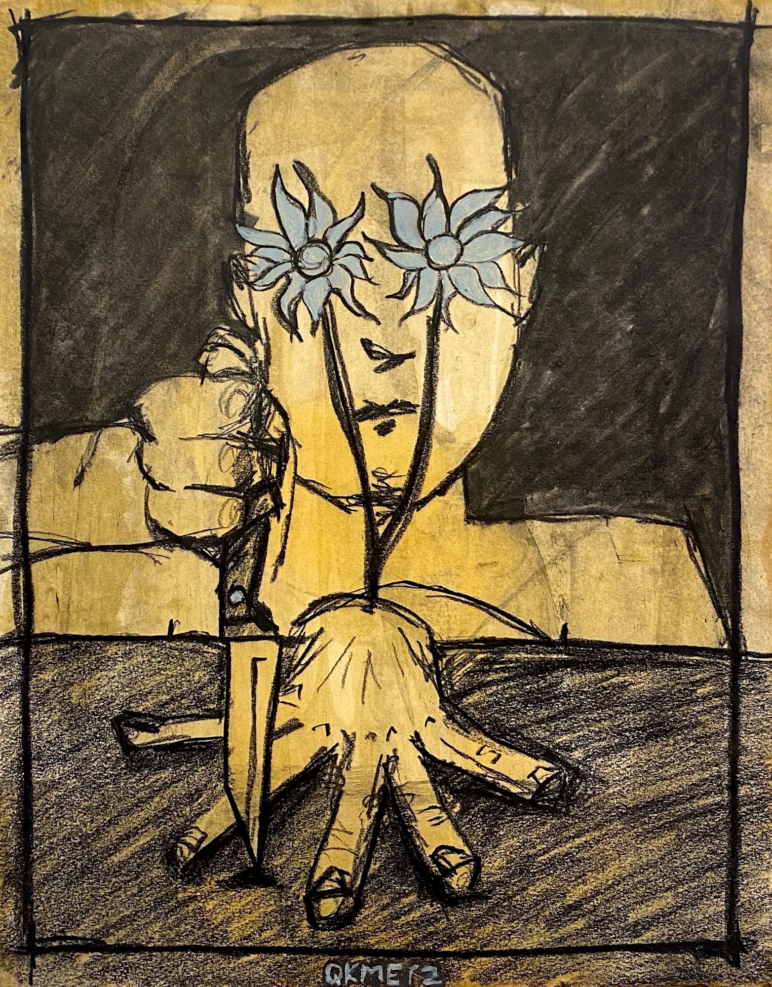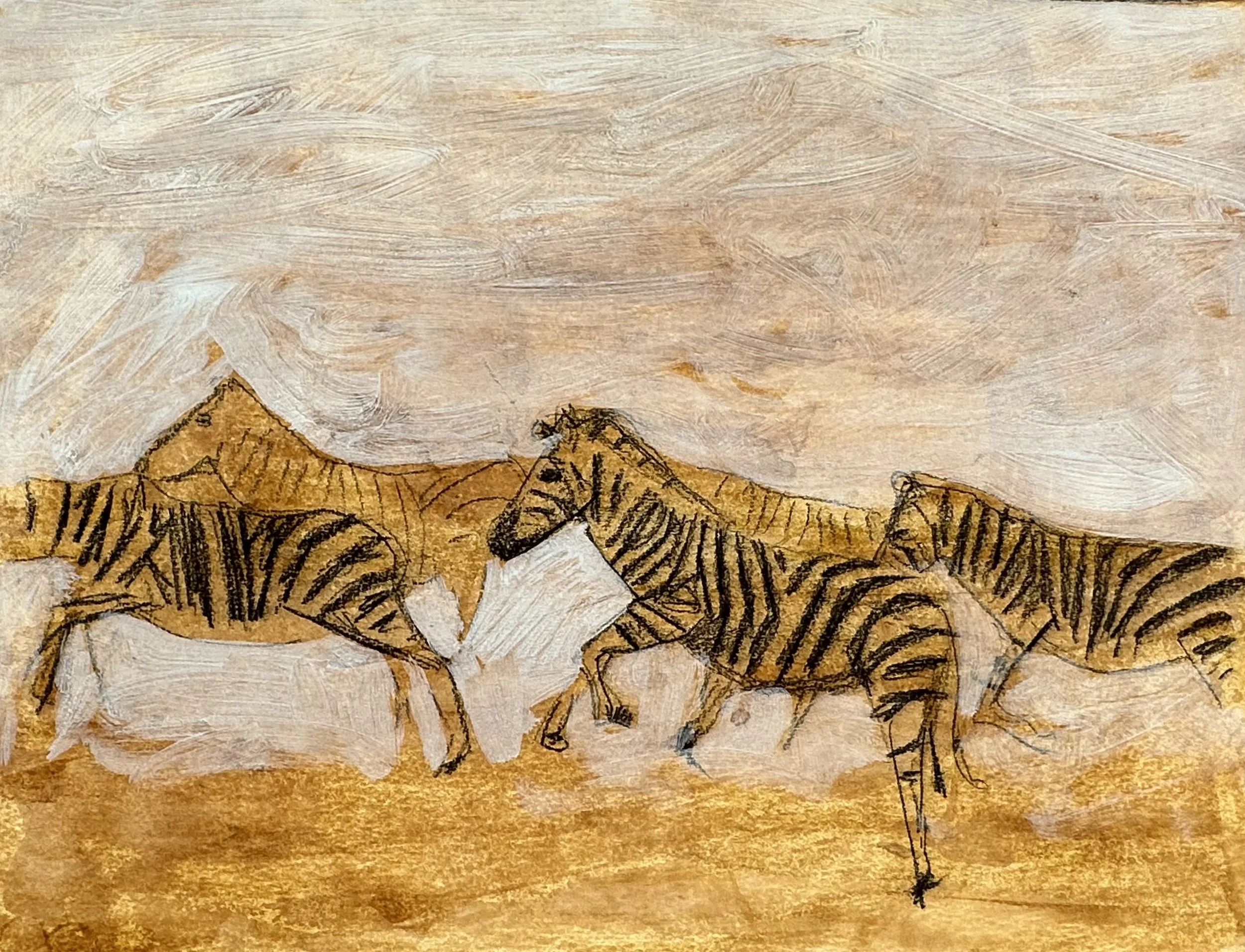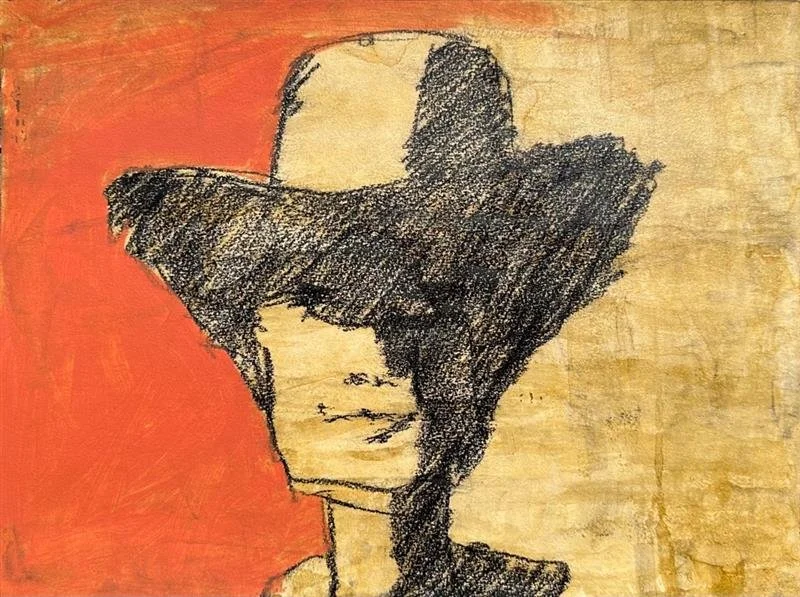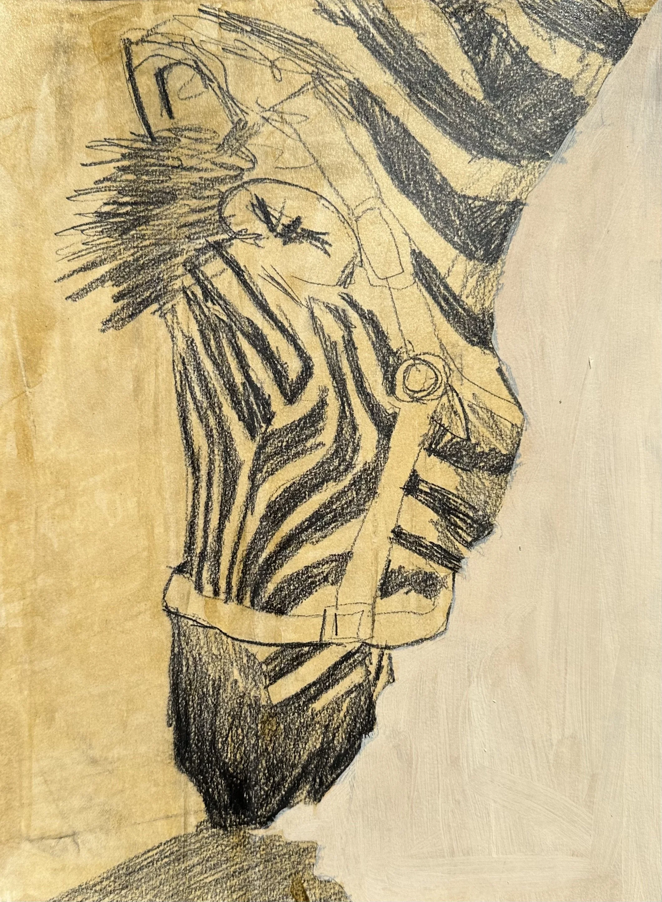 Works on paper: Shellac, graphite, charcoal, colored pencil, oil paint