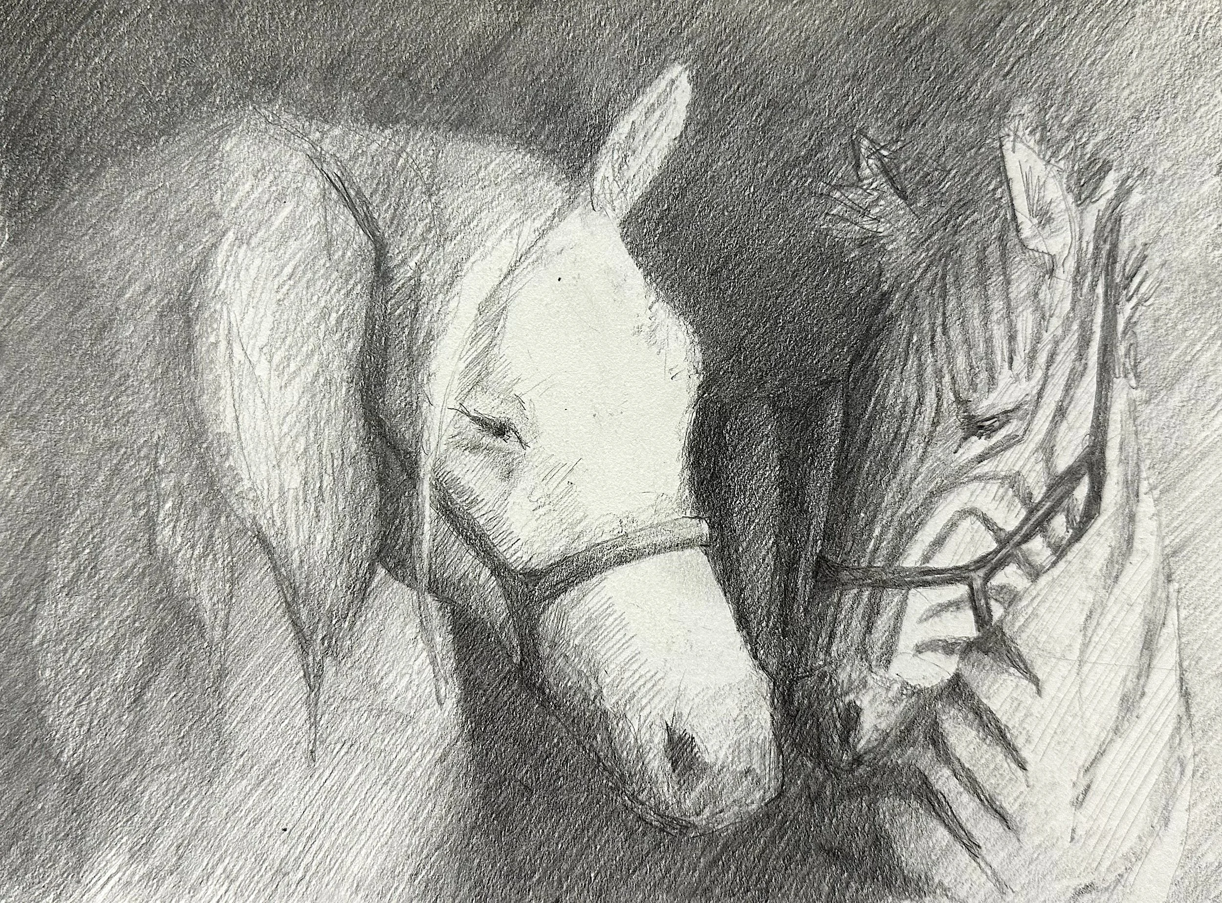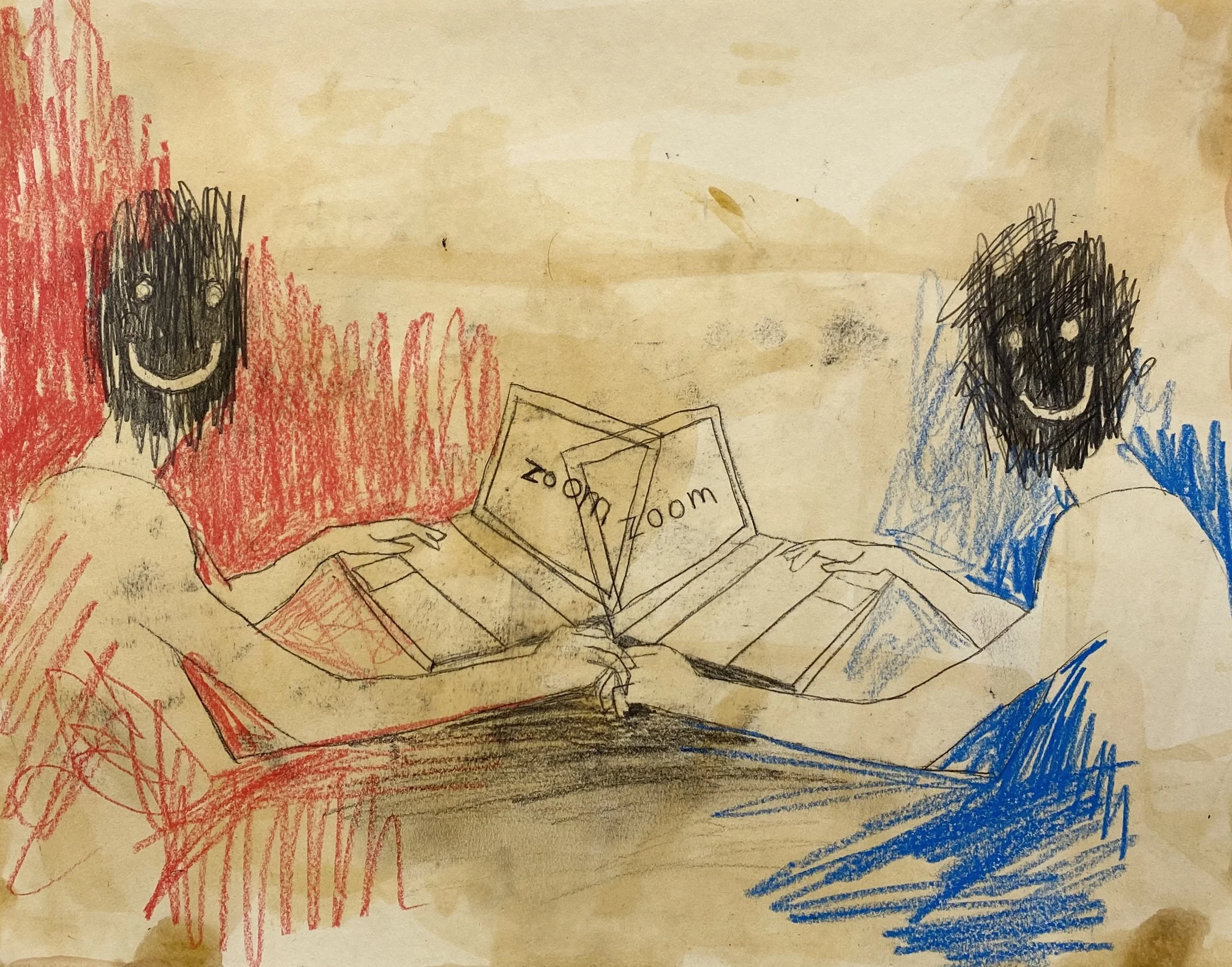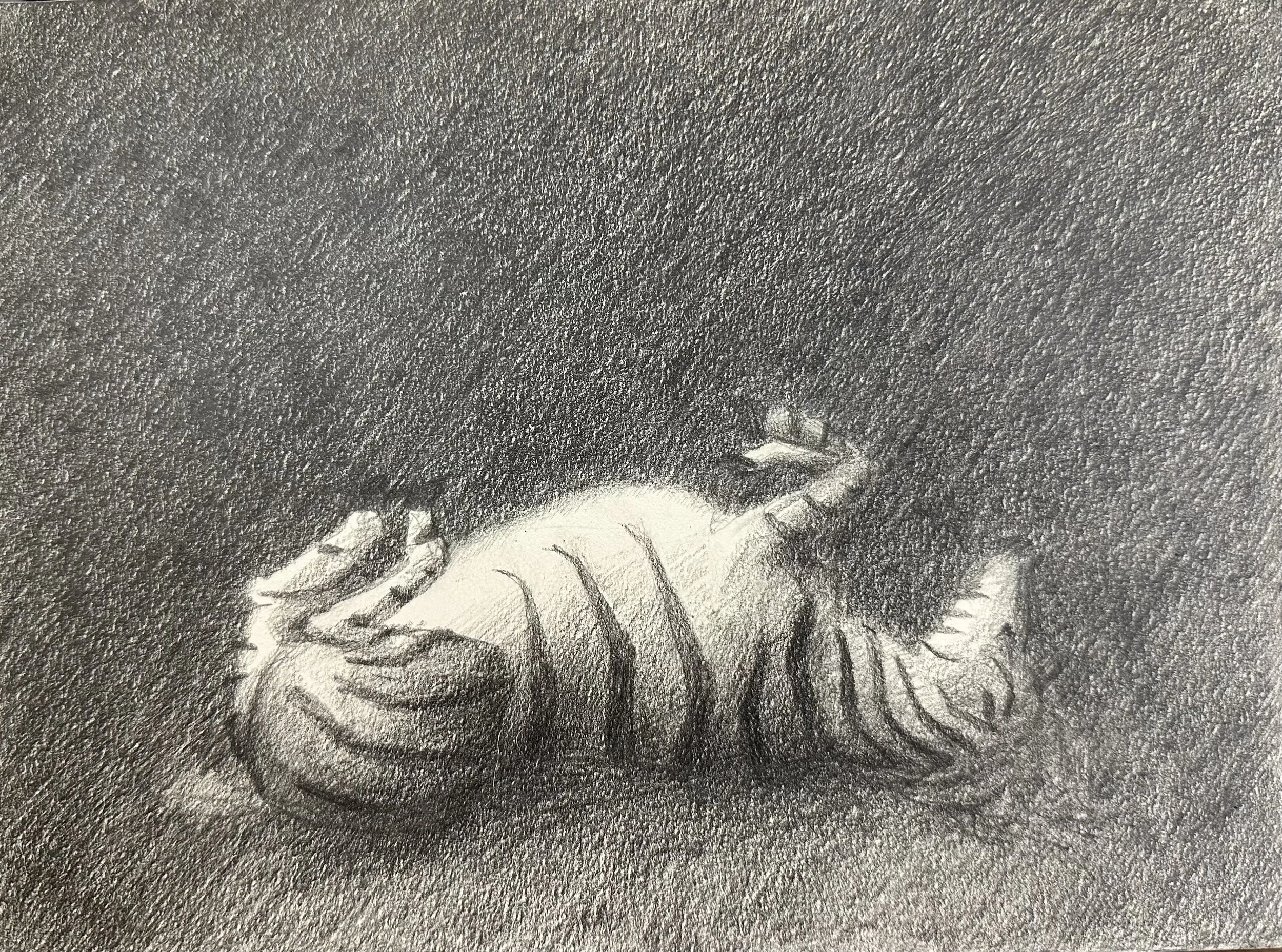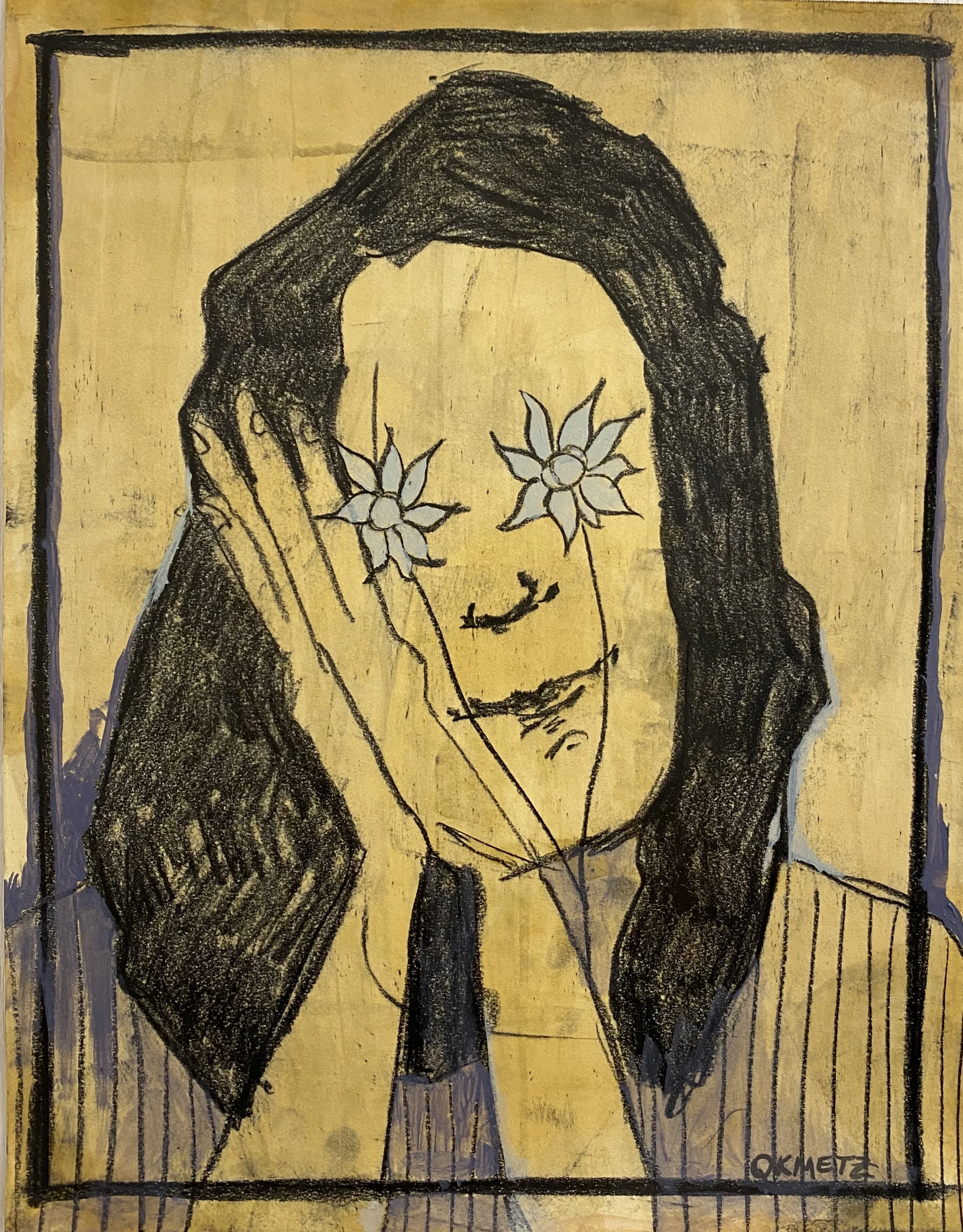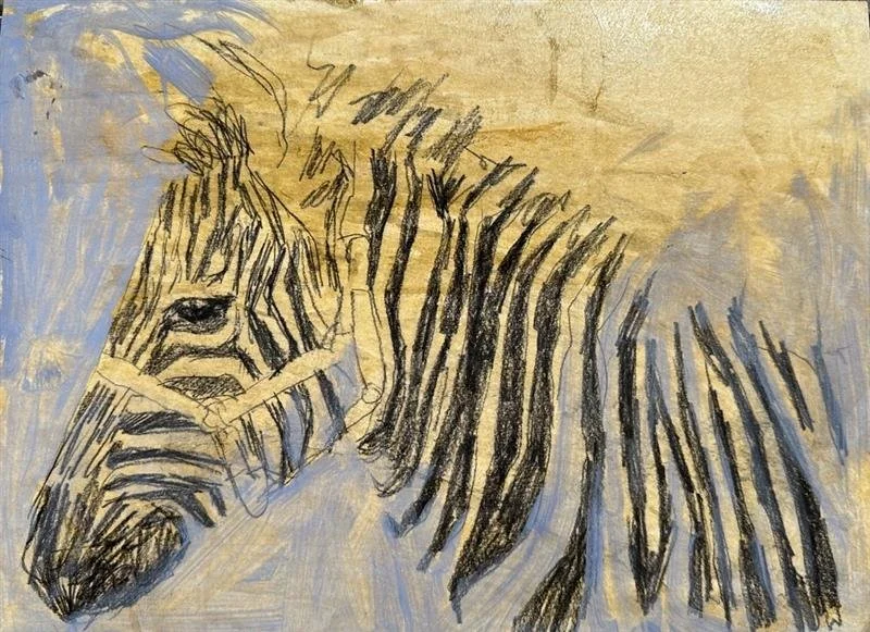 Works on paper: Shellac, graphite, charcoal, colored pencil, oil paint